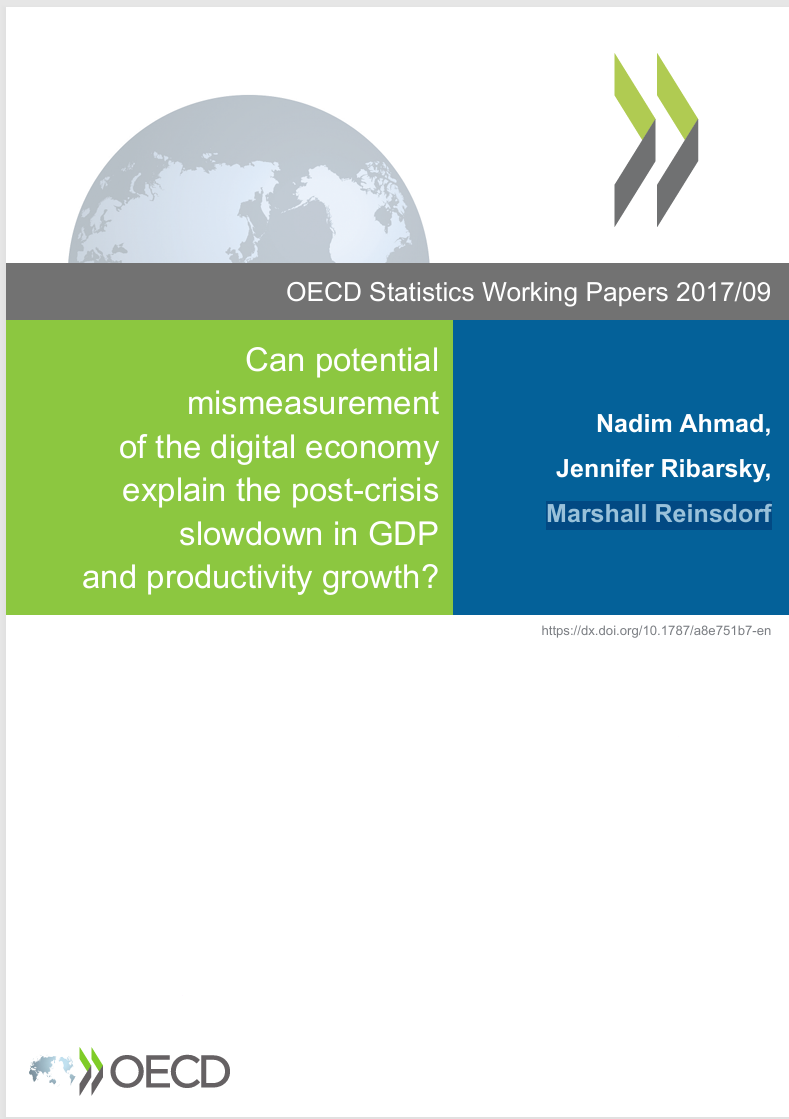 Ahmad, N., J. Ribarsky and M. Reinsdorf. 2017. Can Potential Mismeasurement of the Digital Economy Explain the Post-Crisis Slowdown in GDP and Productivity Growth?, OECD Statistics Working Papers, No. 2017/09, OECD Publishing, Paris.