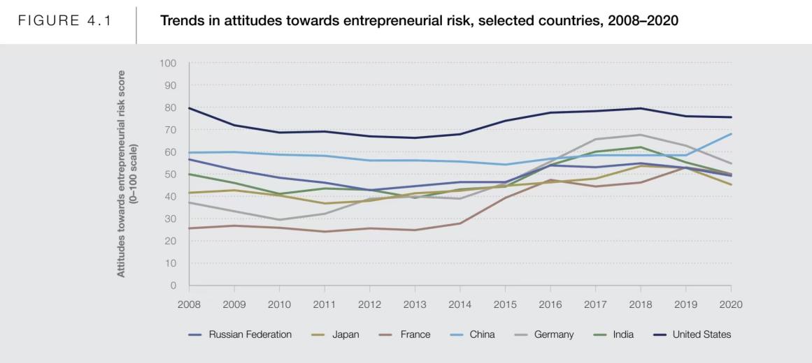 图4 2008-2020年选定国家创业风险态度趋势