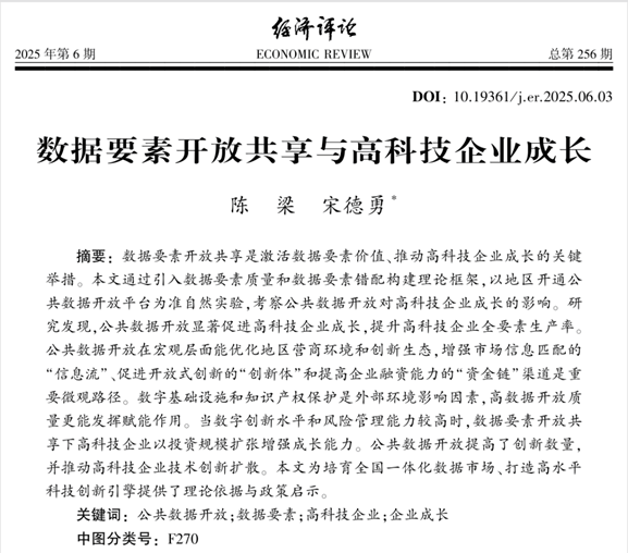12月2日,陈梁博士在《经济评论》发表数据要素相关研究成果(封面文章)。