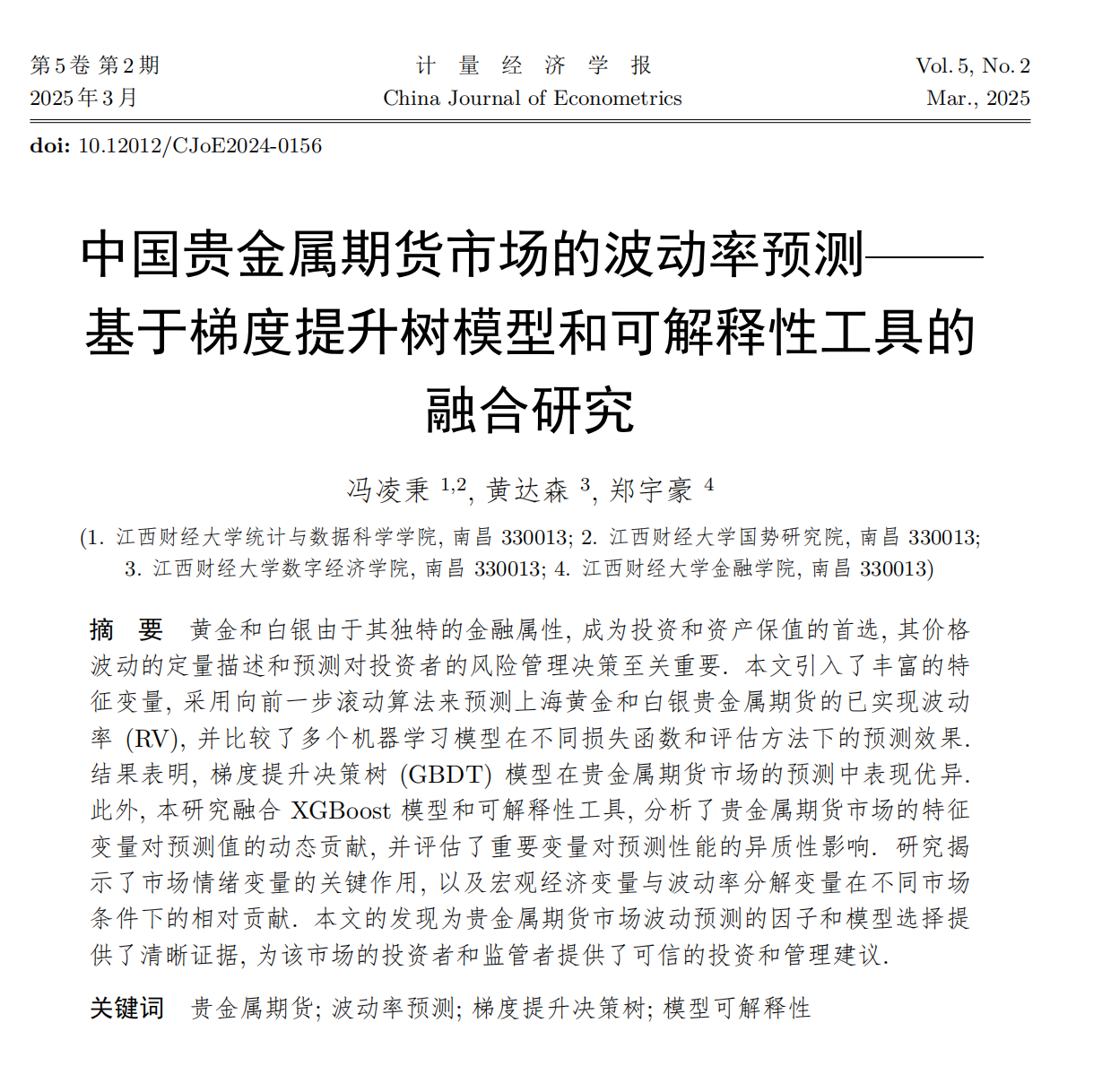 3月,冯凌秉教授团队在《计量经济学报》发表相关研究成果。