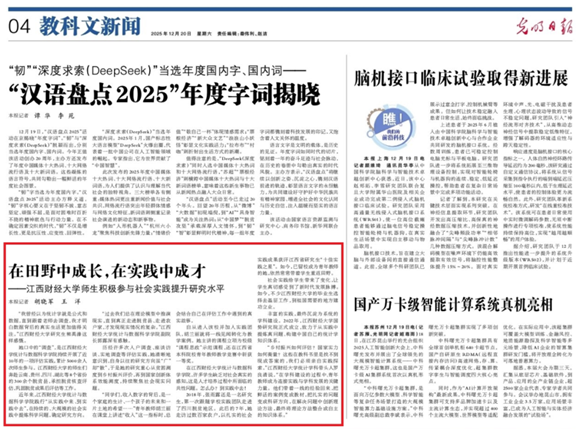 12月20日,《光明日报》专题报道学校统计学科师生社会实践与研究提升情况,进一步体现研究院团队服务国家战略的支撑作用。