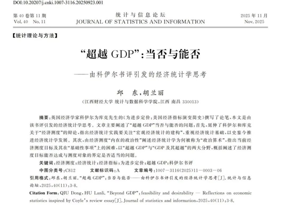 12月1日,邱东教授、胡兰丽博士在《统计与信息论坛》发表“超越GDP”相关研究文章。