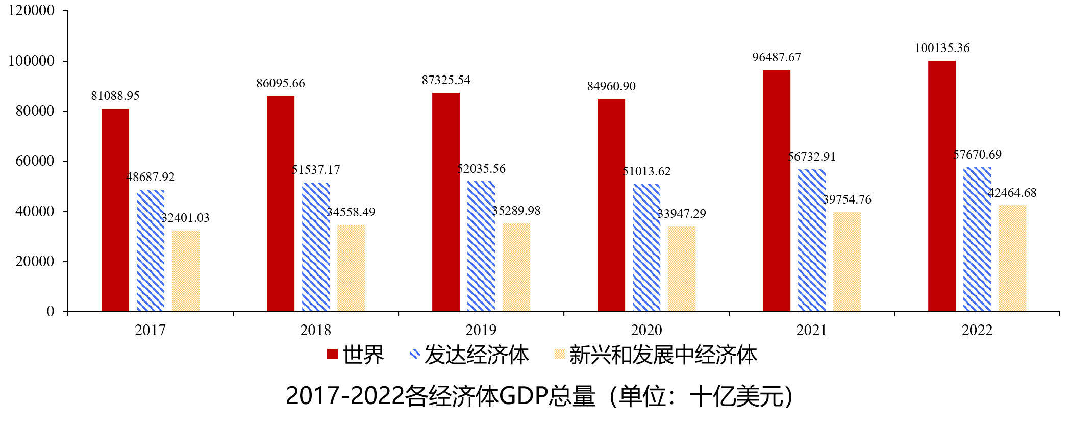 图32017-2022年各经济体GDP总量