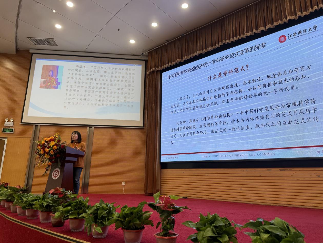 青年长江学者、统计与数据科学学院院长平卫英教授在新时代、新格局与新国势学统计理论高端论坛上以《当代国势学涉及到的学科问题》为主题作特邀报告。基于对经济统计学科研究范式发展历程的系统梳理,平卫英教授揭示出现代国民核算范式目前面临的困境,进而从研究对象、观察角度、认知基准、概念体系以及研究方法五个方面指出当代国势学是继现代国民核算范式后在学科理论和方法论范式上的变革探索,是经济统计真正服务国家治理需要的学科自觉。最后,平卫英教授呼吁变革学科分化的研究格局,将“文史哲”视角加入国势研究,在学科交叉中拓展研究视域,才能有效应对复杂的现实社会经济问题。