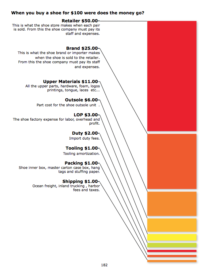对于打苦工的企业和国家而言,能够进入某个产业链,也许比那些被全球化抛弃的国家进了一步,但这笑多半是“苦笑”。以一双名牌鞋为例,中国工厂加工所得不到2美元,而欧美市场售价至少60美元,利益比例极不协调。