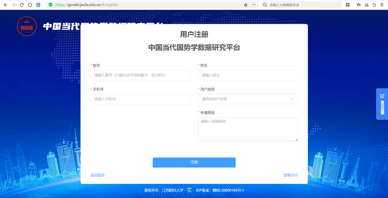 大家好!备受关注的国势学数据研究平台即日起正式面向校内开放注册啦!平台汇聚了丰富的国势学领域数据与研究资源,旨在为大家的学术探索与学习提供强力支持。快来注册体验吧!