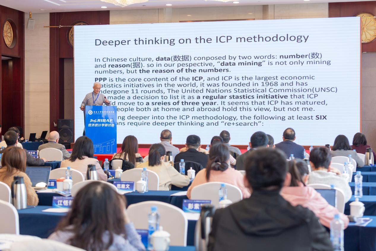 国势研究院院长邱东教授以“Challenges to the ICP Methodology and It sImplications”为题在大会作全英文主旨报告。邱东教授系统剖析了国际比较项目(ICP)方法论在当前全球经济发展背景下所面临的诸多理论及实践挑战。报告中,他结合多年研究积累,深入阐述了ICP方法在购买力平价测算、跨国经济比较中的局限性与改进空间,引发了与会学者的强烈共鸣与热烈讨论。