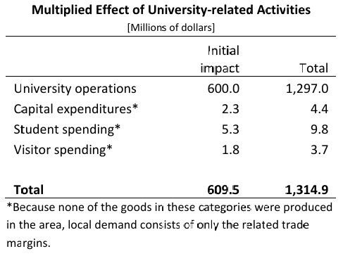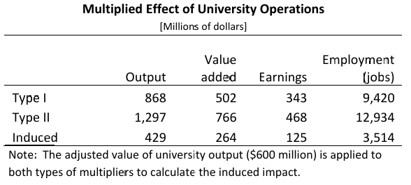 图3 大学相关活动的乘数效应