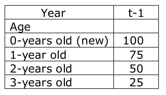Table 1(资产在不同年龄时的价格)