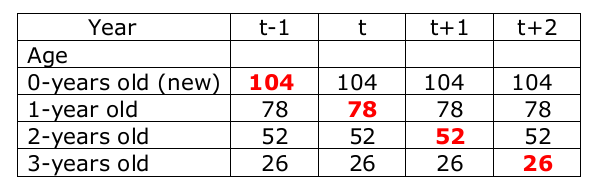 Table 3(不同年份和不同年龄资产的固定价格价值)